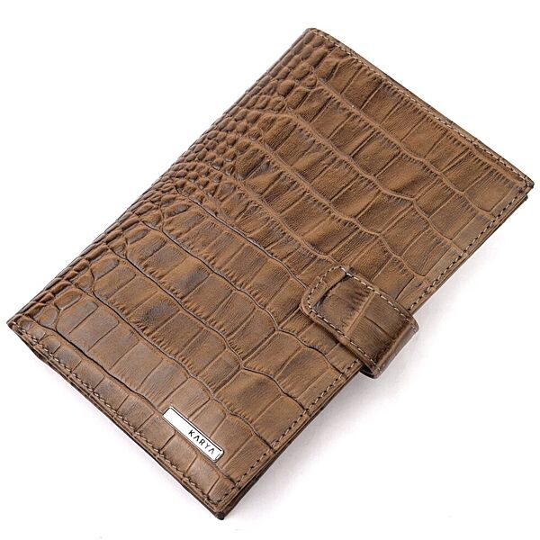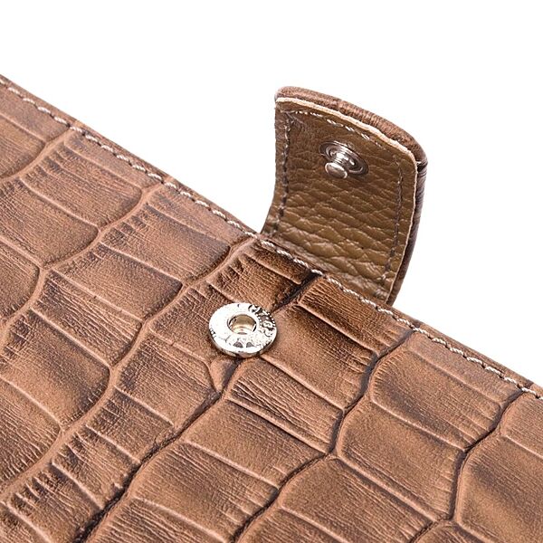 Незвичайне чоловіче портмоне з хлястиком з натуральної шкіри з тисненням під крокодила 721196 Світло-коричневий
