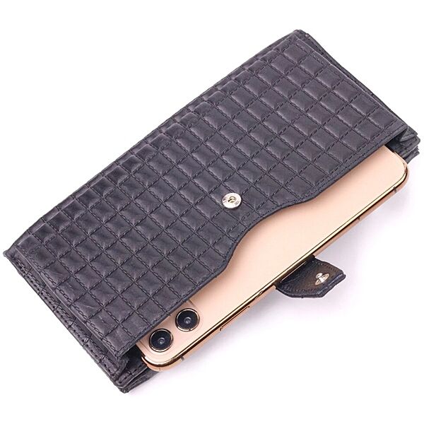 Стеганий вертикальний чоловічий гаманець з натуральної шкіри 721425 Чорний