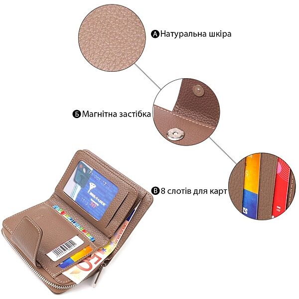 Подробное описание: Надійне вертикальний портмоне для жінок з монетницею на блискавці з натуральної шкіри флотар 721606 Бежеве