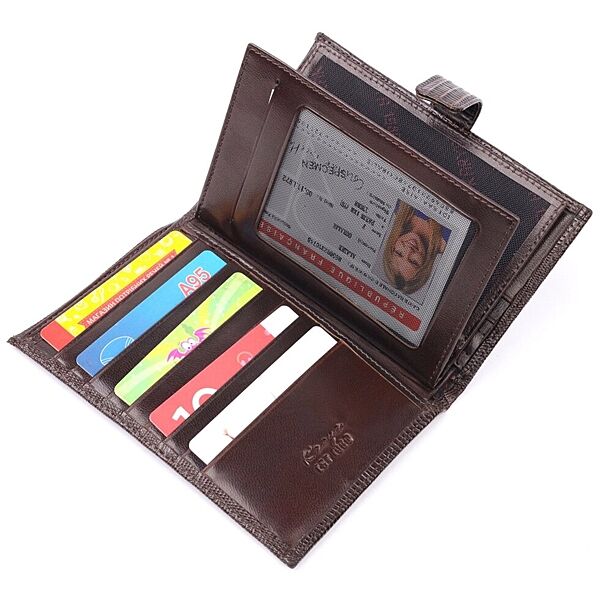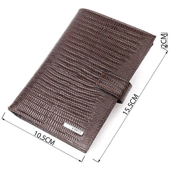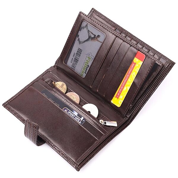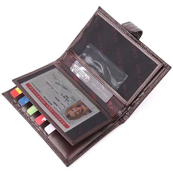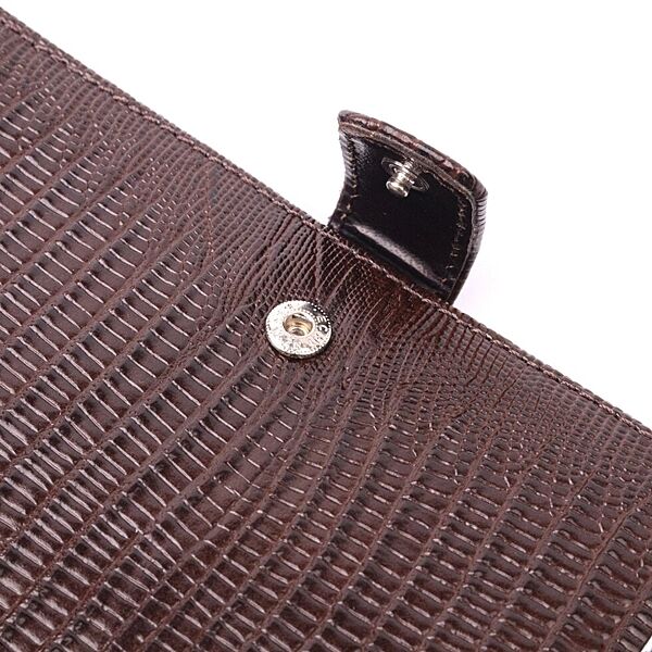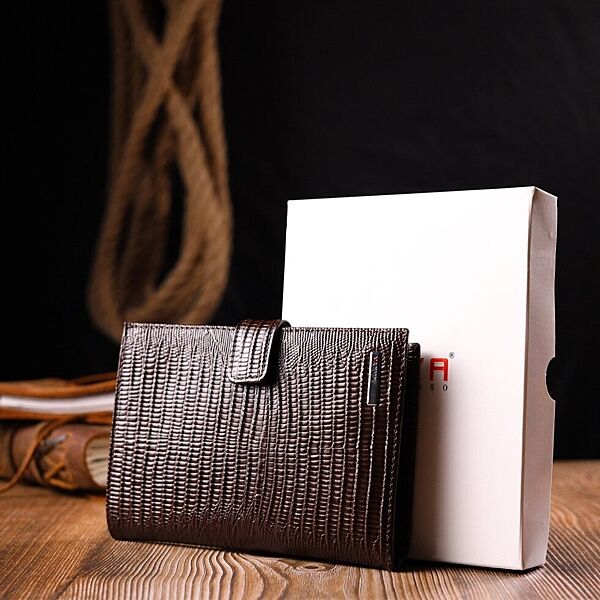Подробное описание: Лаковане чоловіче портмоне з хлястиком із натуральної фактурної шкіри 721194 Коричневий