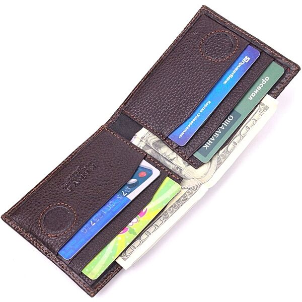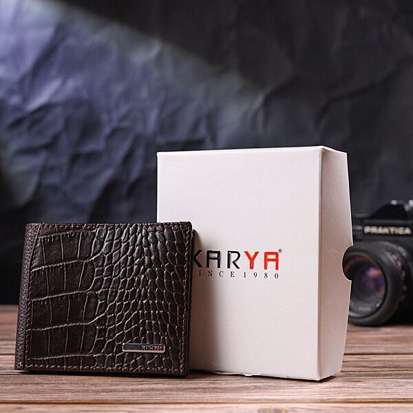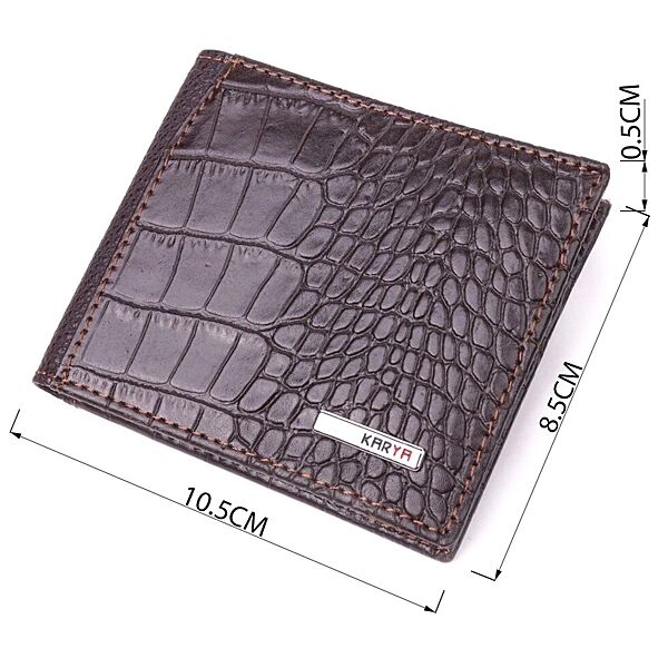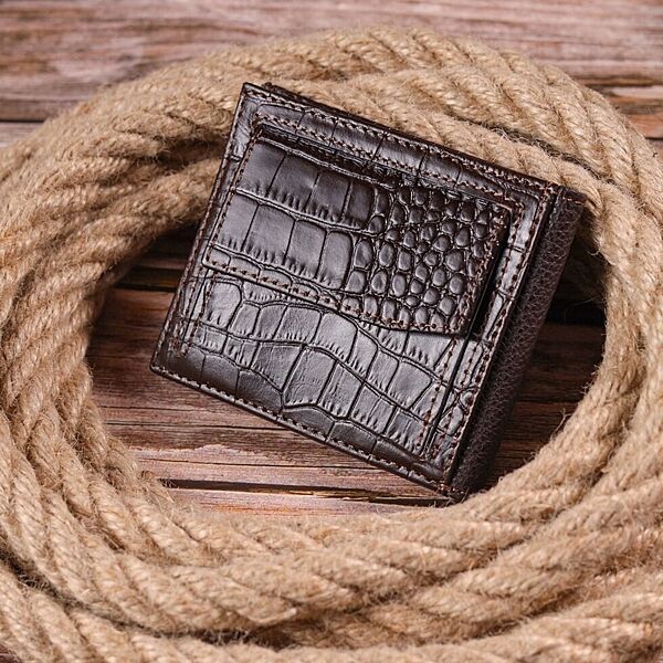 Подробное описание: Фактурний чоловічий затиск із монетницею з натуральної шкіри з тисненням під крокодила 721405 Коричневий