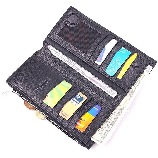 Практичний гаманець із натуральної шкіри в класичному чорному кольорі. Гаманець складається з одного глибокого відділення, чотирьох прилеглих кишень, дванадцяти осередків для карт, відділення під сіточкою, відділення на блискавці зовні та відділення для телефону, що закривається хлястиком на кнопку. У виробах цього елітного турецького бренду завжди використовуються найякісніші шкіряні матеріали та фурнітура. Аксесуар упакований у фірмову коробочку. Шкіряний виріб завжди буде чудовим подарунком для будь-якого чоловіка. ОПЛАТА та ДОСТАВКА: накладний платіж (передоплата 200 грн, залишок при отриманні посилки) або повна оплата на картку. Терміни відправлення 1-3 робочих днів.