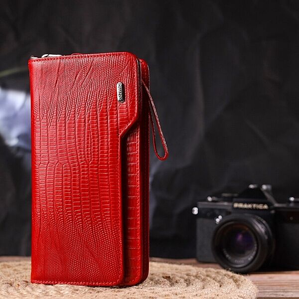 Жіноче портмоне клатч з натуральної шкіри 721534 Червоне