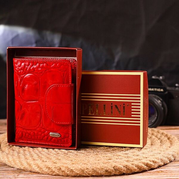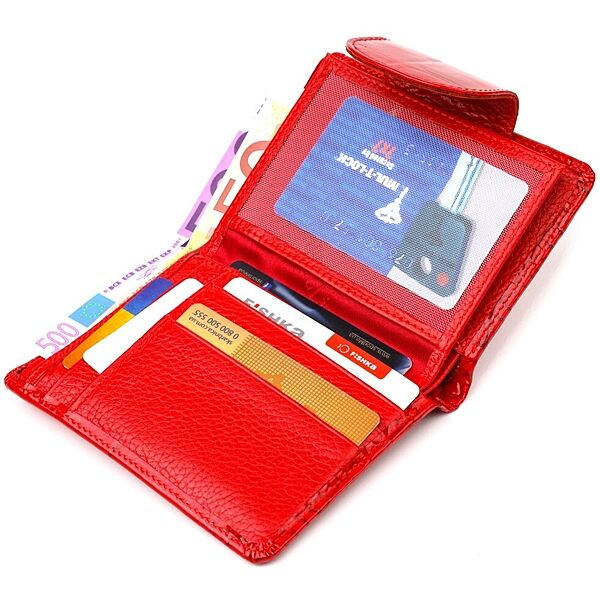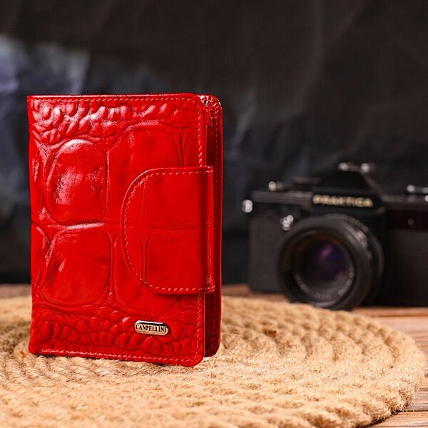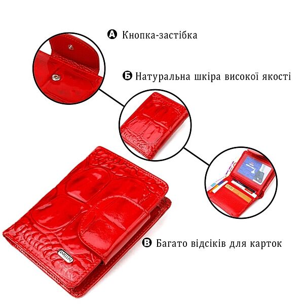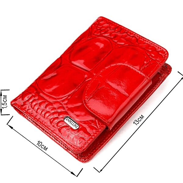 Подробное описание: Лакований вертикальний жіночий гаманець з натуральної шкіри з тисненням під крокодила 721681 Червоний