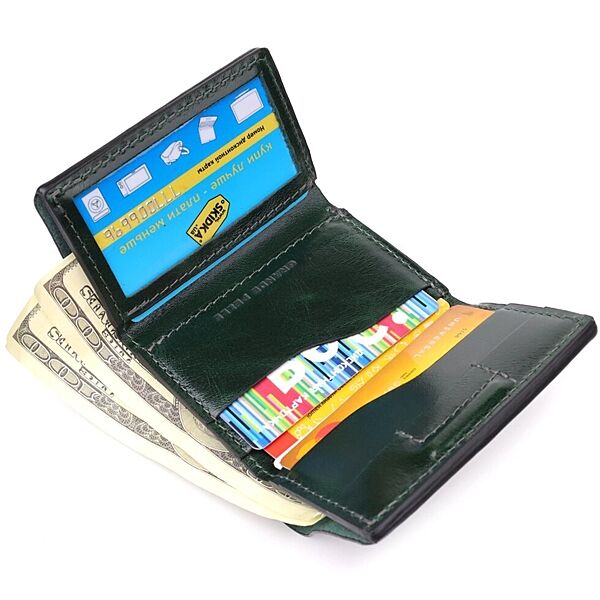 Подробное описание: Відмінний гаманець у три складання з натуральної гладкої шкіри 722944 Зелений
