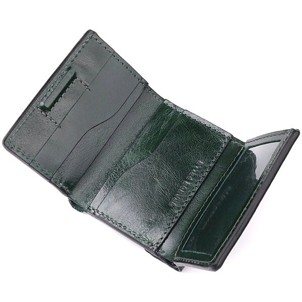 Відмінний гаманець у три складання з натуральної гладкої шкіри 722944 Зелений