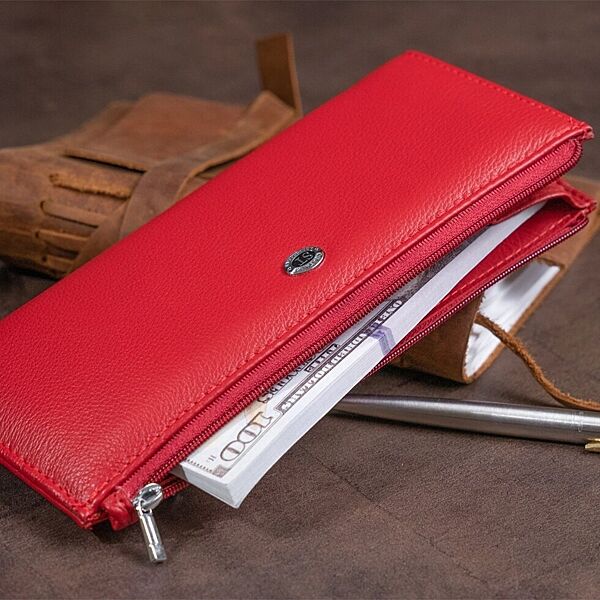Горизонтальний тонкий гаманець зі шкіри жіночий 719330 Червоний