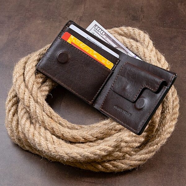 Якісне портмоне в гладкій шкірі на магнітах 711307 Коричневе