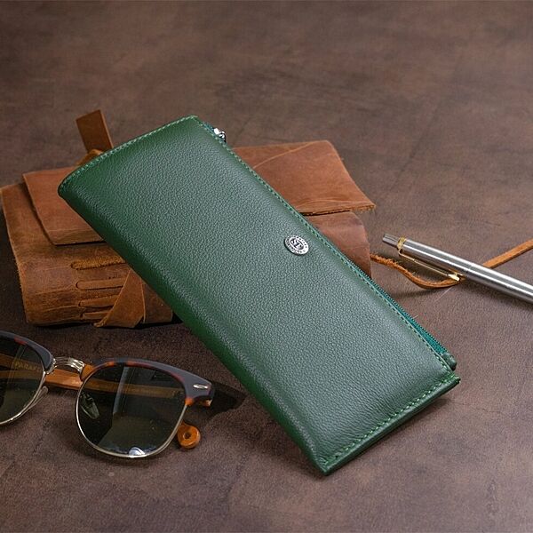 Горизонтальний тонкий гаманець зі шкіри унісекс 719328 Зелений