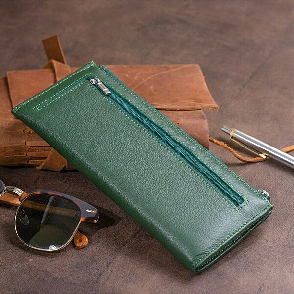 Подробное описание: Горизонтальний тонкий гаманець зі шкіри унісекс 719328 Зелений