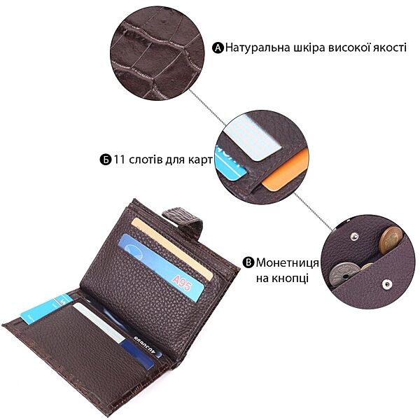 Подробное описание: Компактний чоловічий гаманець із натуральної шкіри з тисненням під крокодила 721386 Коричневий