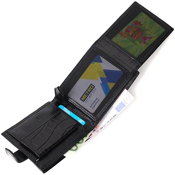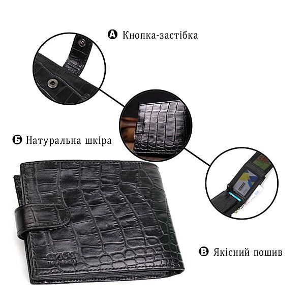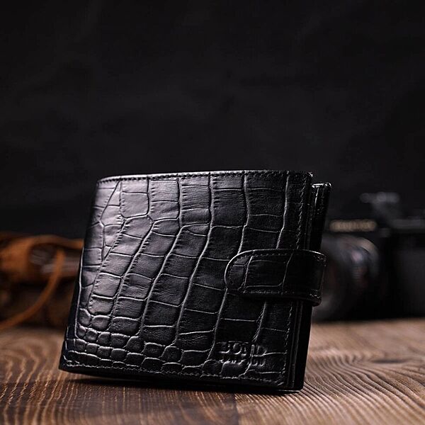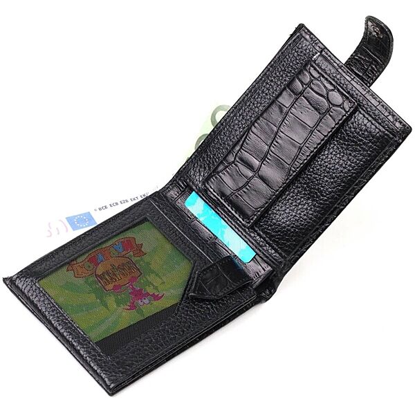 Подробное описание: Місткий гаманець середнього розміру для чоловіків з натуральної шкіри з тисненням під крокодила 722000 Чорний