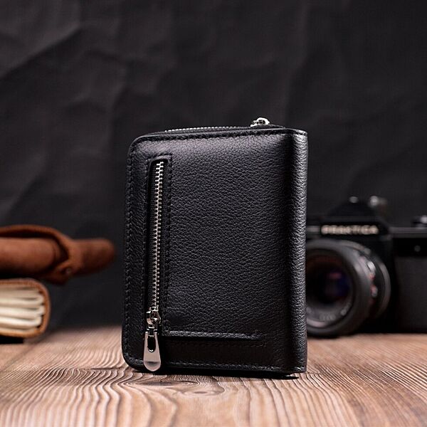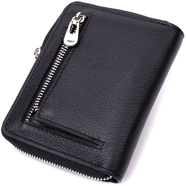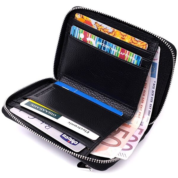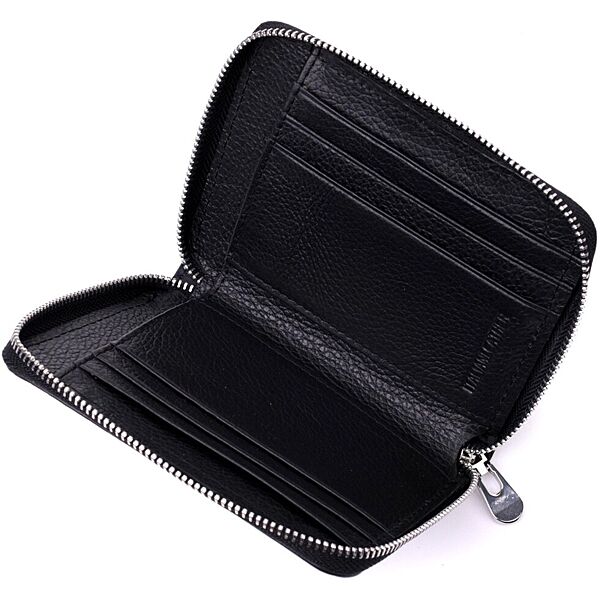 Шкіряний гаманець для жінок на блискавці з тисненим логотипом 719489 Чорний