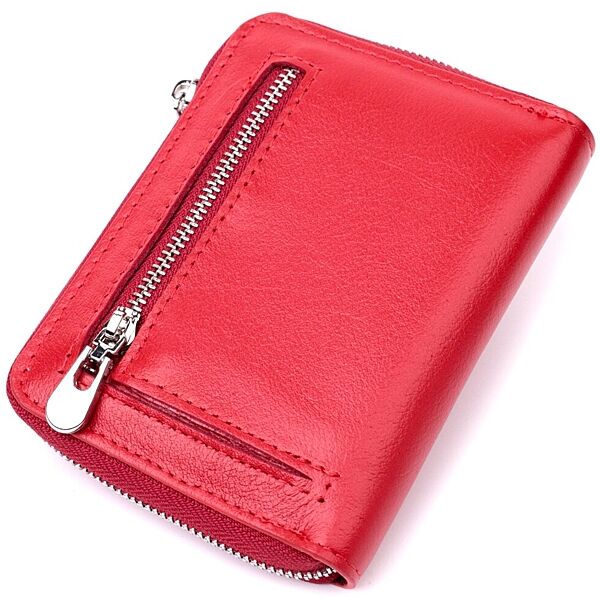 Стильний шкіряний гаманець для жінок на блискавці з тисненим логотипом 719490 Червоний