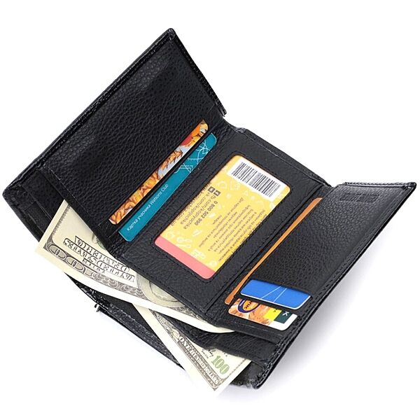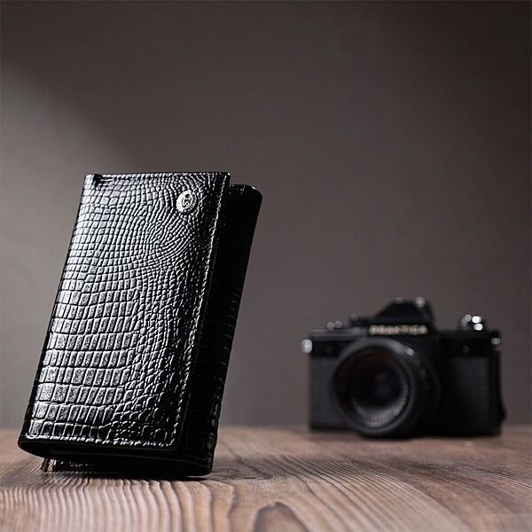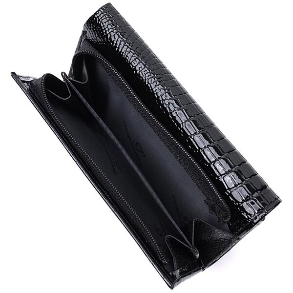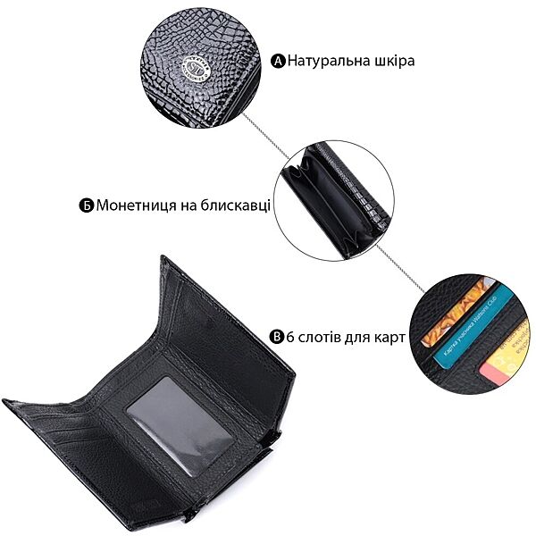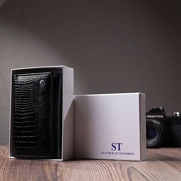 Подробное описание: Жіночий гаманець у три складання з лакованої фактурної натуральної шкіри 722707 Чорний