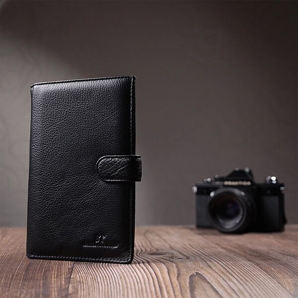 Універсальний чоловічий гаманець для грошей та документів з натуральної шкіри 722735 Чорний