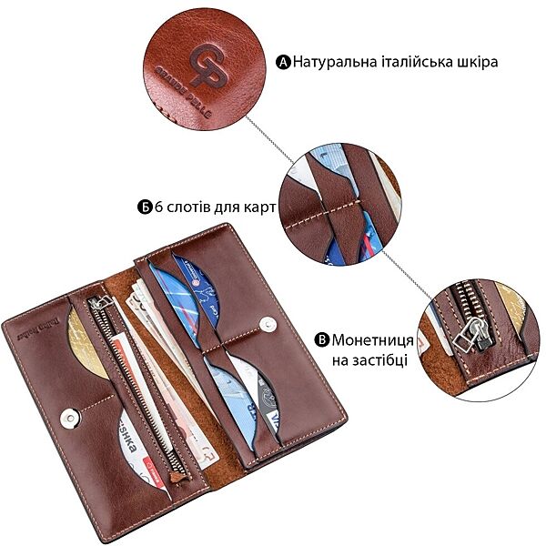 Вертикальний гаманець з м´якої натуральної шкіри. Виробники використовують тільки італійську шкіру. Гаманець прекрасно лежить в руці і виглядає набагато краще ніж на фотографії. Якщо ви любите якісні шкіряні речі, такий гаманець спеціально для вас. Якісна фурнітура та продуманий дизайн роблять модель популярною серед багатьох клієнтів. Закривається виріб на магнітну кнопку. У комплекті йде картонна коробка, яка вам зможе замінити подарункову упаковку.
