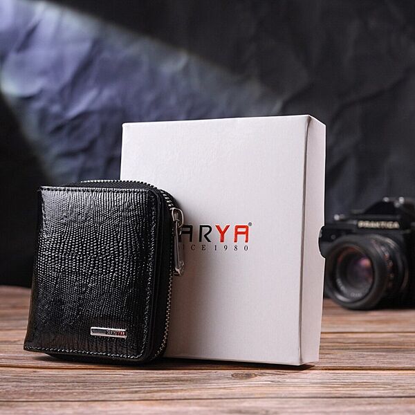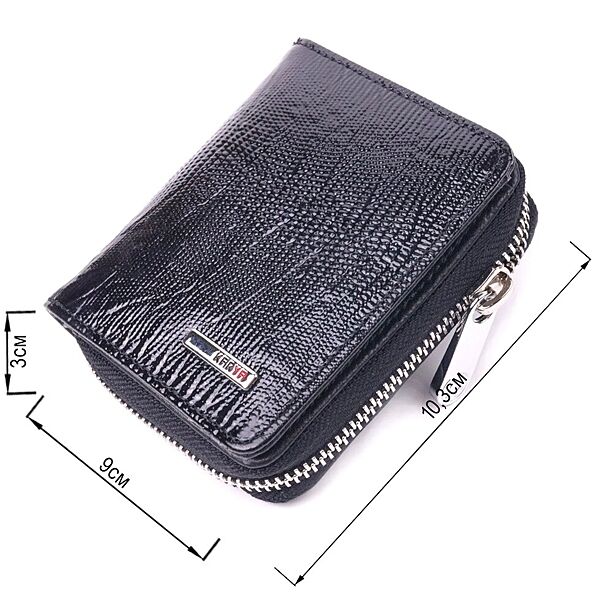 Лакований гаманець для жінок з монетницею на блискавці з натуральної шкіри фактурної 721411 Чорний
