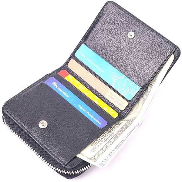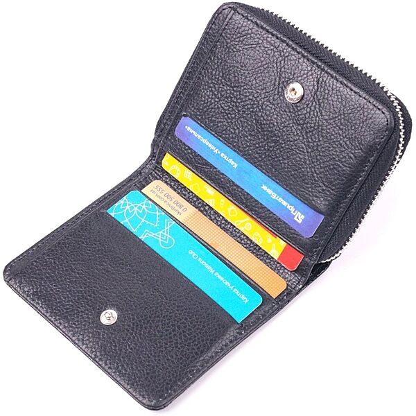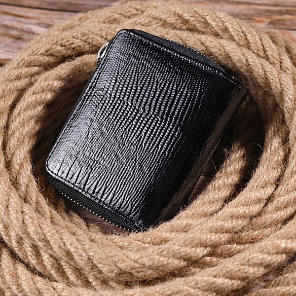 Подробное описание: Лакований гаманець для жінок з монетницею на блискавці з натуральної шкіри фактурної 721411 Чорний