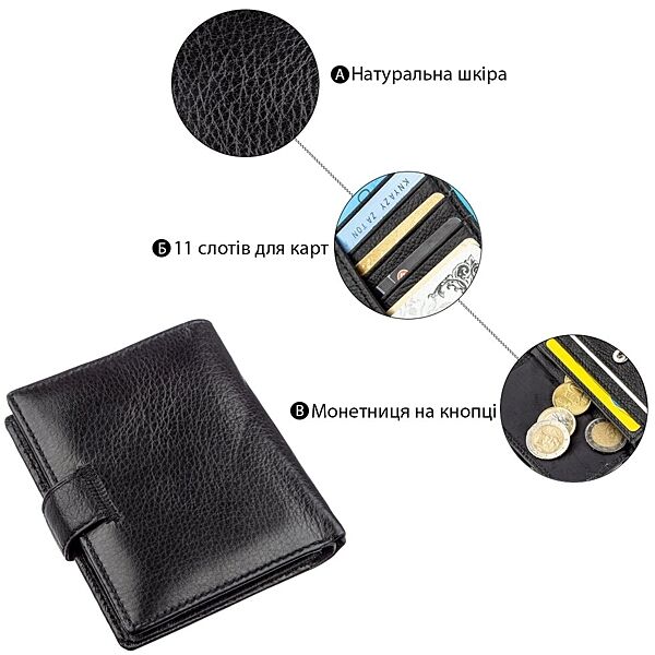 - чоловічий гаманець з натуральної шкіри на кнопці;
