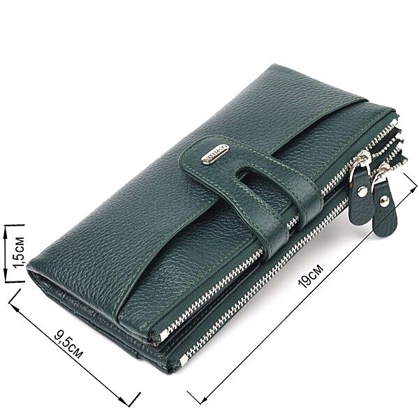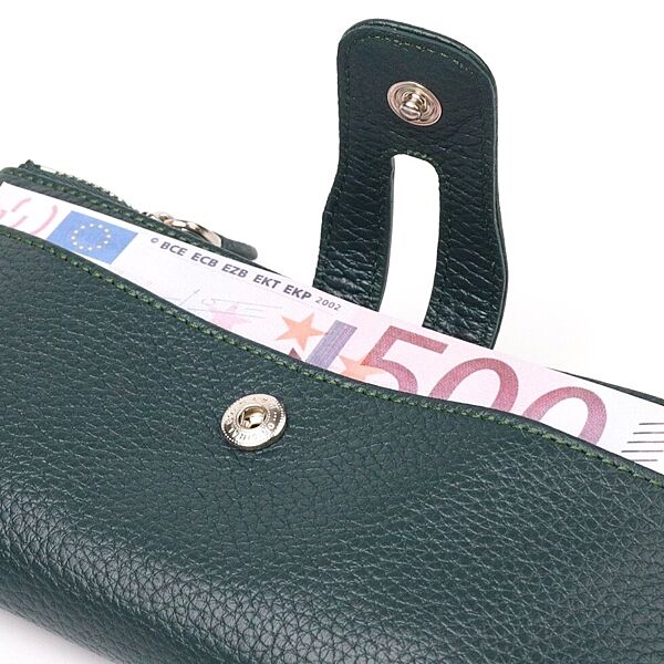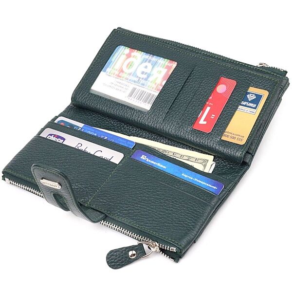 Місткий гаманець з натуральної зернистої шкіри 721633 Зелений