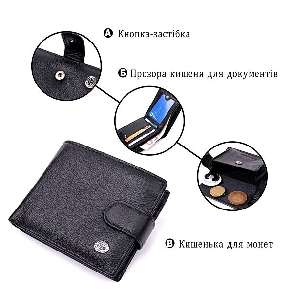 Подробное описание: Класичне портмоне для чоловіків із блоком для карток з натуральної шкіри 719473 Чорне