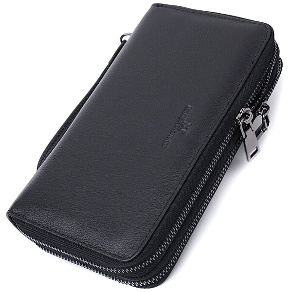 Стильний чоловічий клатч на два відділення із натуральної шкіри 722700 Чорний