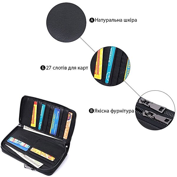 Зручний чоловічий клатч у класичному стилі із натуральної шкіри. Для максимальної зручності гаманець розділений на два великі відділення, що закриваються на блискавці. Аксесуар має все необхідне, щоб стати Вам незамінним помічником у повсякденному житті. Ви легко помістите в нього паперові купюри, монети, документи, картки і навіть смартфон. На лицьовій стороні вгорі посередині розташоване тиснення з логотипом виробника, що є запорукою якості виробу. Запакований аксесуар у білу щільну картонну коробку з фірмовим логотипом. ОПЛАТА та ДОСТАВКА: накладний платіж (передоплата 200 грн, залишок при отриманні посилки) або повна оплата на картку. Терміни відправлення 1-3 робочих днів.