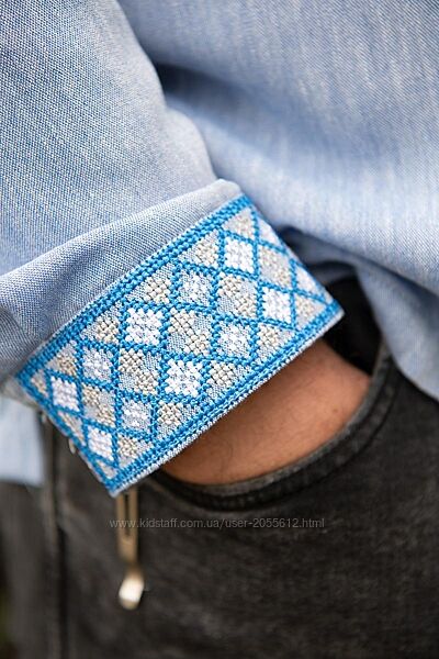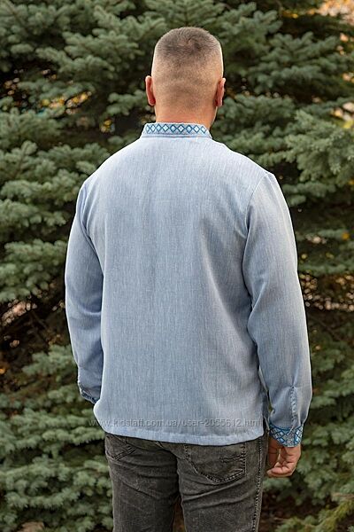 Подробное описание: Блакитна вишиванка чоловіча льон меланж