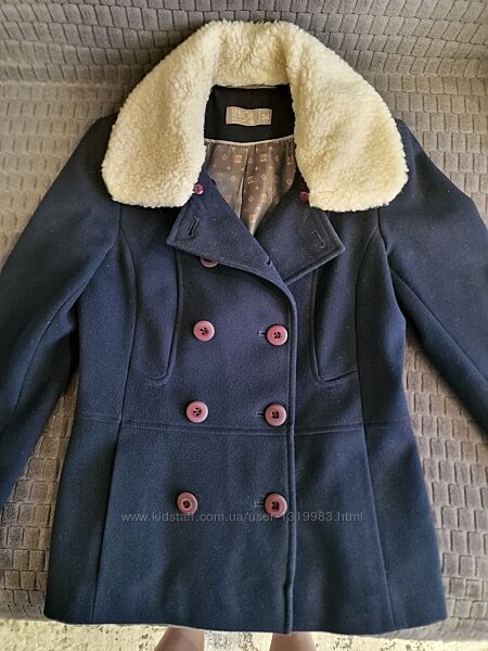 Пальто коротке Seazon.Колір темно-синій, пуговки темно-синьо-бордові.(на фото засвічує). Є кармани.