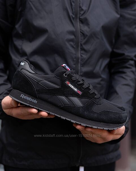 р.41-45 Кроссовки Reebok Classic Leather Triple Black RB025