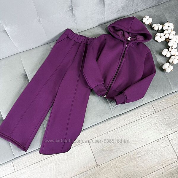 Костюм кольору слива, шоколад,теплий на флісі. Кофтинка на замочку. Штани палаццо з кишенями з імітованою стрілочкою. Суперова якість. Тканина - тринитка на флісі, туреччина. Не кошлатиться.📐Заміри: