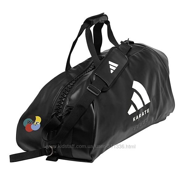 Стильна спортивна сумка-рюкзак Adidas з логотипом Всесвітньої федерації карате (WKF) - можна використовувати трьома способами: як тоут, через плече або як рюкзак.Головна центральна блискавка «трактор» - надійна, практична і привертає увагу своїм не стандартним розміром.