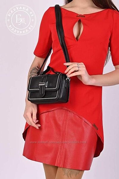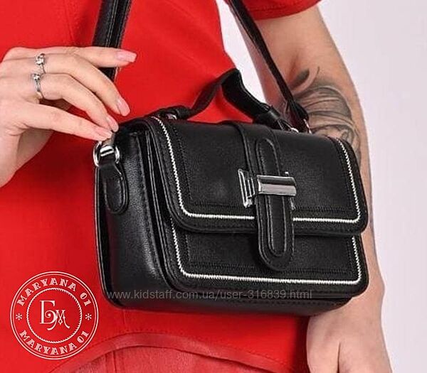 Передній клапан прикрашений гарною декоративною пряжкою, а по периметру сумочки проходить контрастна вишивка, яка додає виробу вишуканого шарму. Незважаючи на компактний розмір, сумочка є вмісткою та універсальною, ідеально підходить як для повсякденних образів, так і для вечірніх виходів.