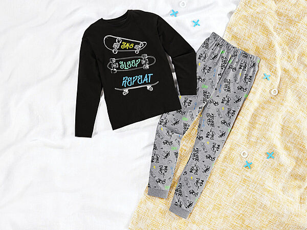 Піжама (домашній костюм) із бавовни від німецького бренду Pepperts (Німеччина). Складається з трикотажного реглану та штанів із зручним еластичним поясом та манжетами знизу. У гардеробі кожної сучасної дитини обов´язково має бути стильна та комфортна піжама, яка забезпечить їй оптимальні умови для міцного сну. Костюм виготовлений з натурального матеріалу, що надійно зберігає оптимальну температуру тіла, дозволяє шкірі дихати, дуже приємний на дотик. Піжама вільного крою не стискає руху, тому в ній комфортно не лише спати, а й ходити по дому. Ecoprint - 100% екологічний текстильний друк.Заміри: надаємо по запиту