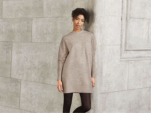 В´язана сукня від німецького бренду Esmara. Виготовлена з приємно м´якої, теплої, щільної трикотажної тканини. У образі оверсайз з модно спущеними плечима. Еластичні манжети на подолі та кінцях рукавів. Оптимальна посадка завдяки еластану LYCRA®. З класичним коміром-стійкою та вшитою нагрудною кишенею.Заміри: надаємо по запиту