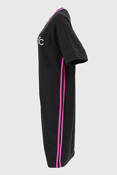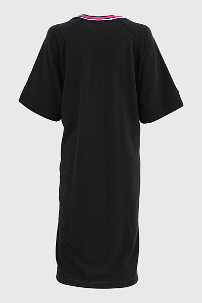 Спортивна сукня з коротким рукавом. З м´якої бавовняної тканини (двунитка). Модель прямого крою з круглим вирізом. Надпис спереду.Заміри: на бірці вказано розмір 44/46, який відповідає міжнародному розміру L.