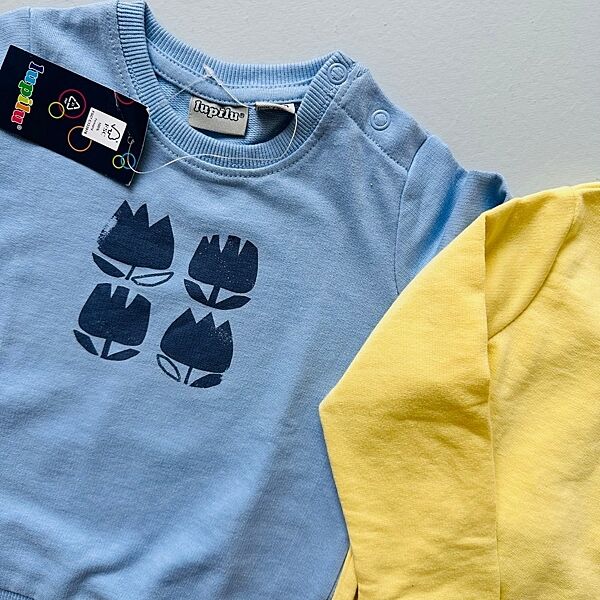 Світшот із щільного бавовняного трикотажу (двонитка) від німецького бренду Lupilu. На горловині, подолі та внизу рукавів трикотажна гумка. Легко одягати та знімати завдяки практичній застібці на плечі. Кількість 2 шт.Заміри: надаємо по запиту