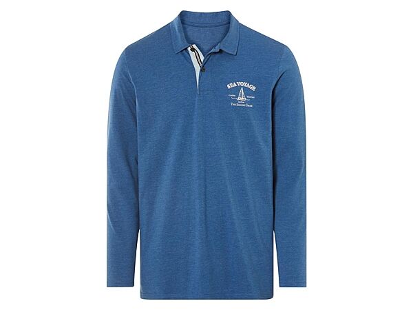 Футболка поло з довгими рукавами з планкою на гудзиках для чоловіка Livergy LIDL 464107 синій
