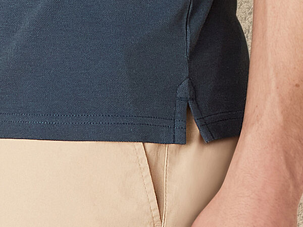 Футболка поло із бавовняного піке від бренду Livergy. З коротким рукавом і коміром з рельєфного трикотажу, планкою на гудзиках зверху. Комфорт завдяки натуральній бавовні. Контрастна смуга на комірі та кінцях рукавів. З невеликими розрізами з боківЗаміри: надаємо по запиту
