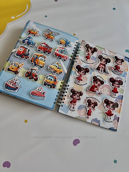 Книжка також знайомить дітей з різними видами транспорту, фігурами та цифрами від 0 до 10. А ще малюки дізнаються про цікаві професії та навчаться розпізнавати свої емоції.