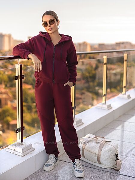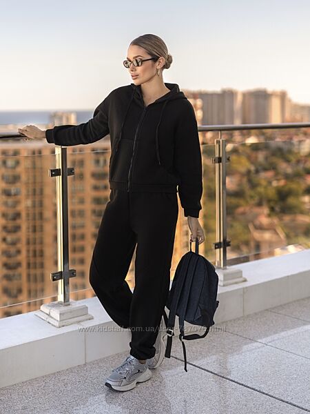 Модель виготовлена з трикотажу тринитка на флісі — щільної, зносостійкої тканини, яка чудово зберігає тепло, при цьому дихає та не деформується після прання. Завдяки внутрішньому шару з м’якого флісу костюм дарує відчуття затишку навіть у найпрохолодніші дні.