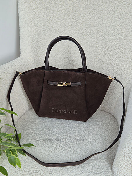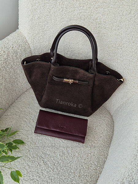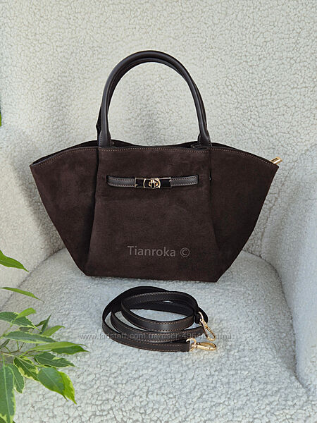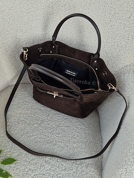 Подробное описание: Італійська шоколадна замшева сумка тоут. Коричневая замшевая сумка Италия