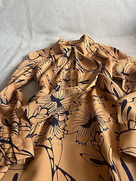 Гарна сукня сорочка з квітковим принтом Вишукана і жіночна , чудово виглядає на фігурі До таліі на гудзичках з комірцем-краваткою довжина 120 см пог 46/47 см ПОТ 38 см