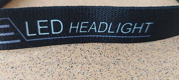 Налобный фонарик на акумуляторе. Шнур для зарядки в комплекте.Регулируемая резинка на голову.