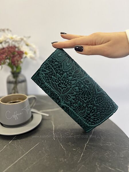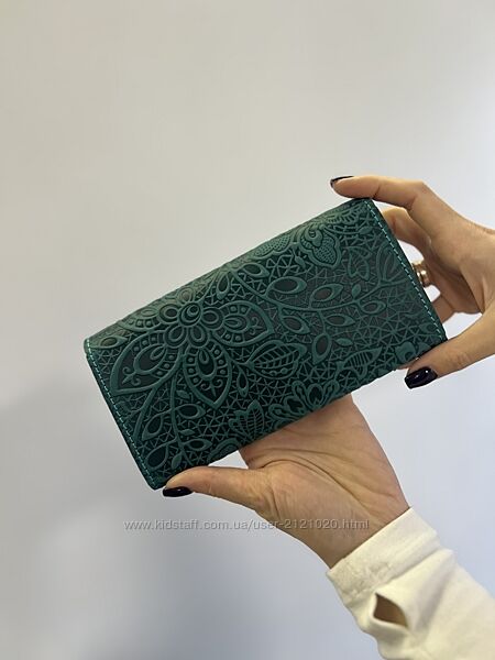 Шкіряний жіночий гаманець з тисненням. Виготовлений з натуральної шкіри, на поверхню якого нанесено рельєфний, обʼємний орнамент шляхом пресування (тиснення). Тиснення надає гаманцю вишуканості та оригінальності в дизайні.Такий гаманець може бути не лише функціональним аксесуаром, а й чудовим подарунком, що підкреслить індивідуальність його власника.
