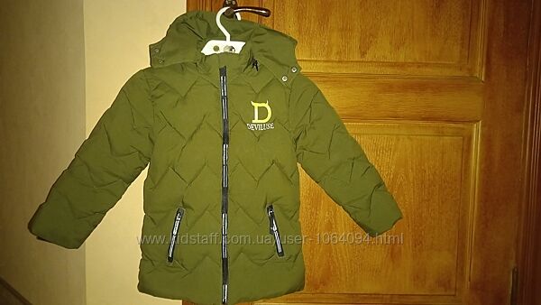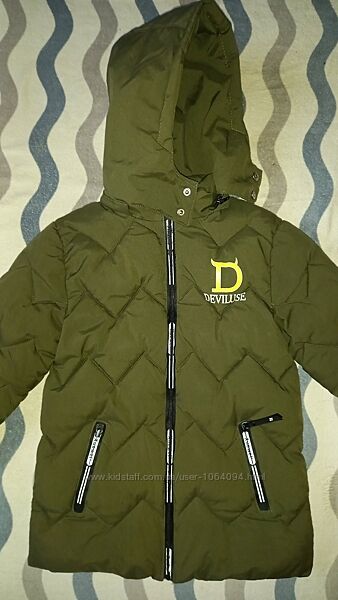 Чудова подовжена стьобана куртка Deviluse зима єврозима на 6-7років р.116-122Стан чудовий, ньюансів немає. Колір оливковий, хакі.