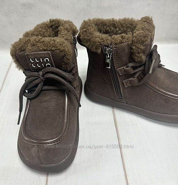 Подробное описание: Дитячі зимові черевики лофери на овчині Lilin коричневі 26-31
