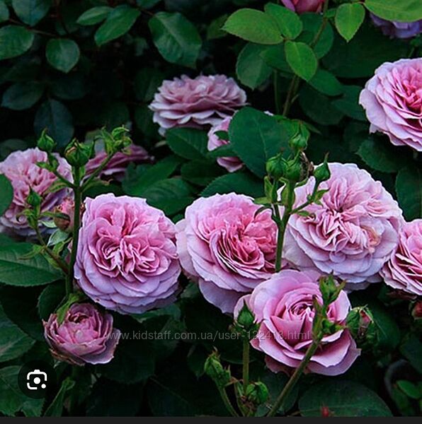 Цветки: Густомахровые, розетковидные, сиренево-лавандовые с серебристым отливом.