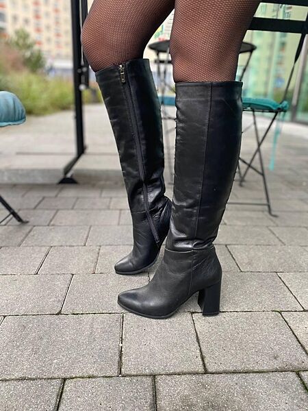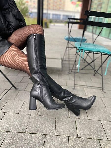 Производство Украины. Материал верха: кожа натуральная Внутри: байка Сезон: весна-осень Высота от пятки: 40см. Обхват голени: 32-33см. Каблук: 8см. Идут на стопу:. 37р.-24см.Предложения от магазина